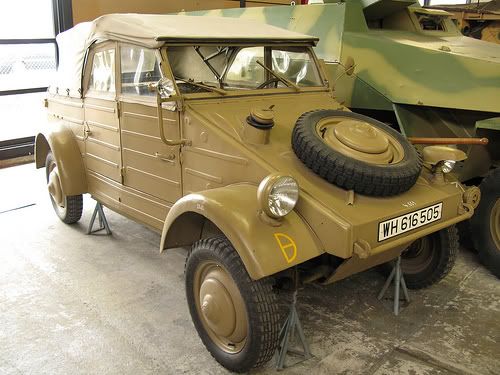 El Kübelwagen era la versión militar del Volkswagen Escarabajo. Fue diseñado por Ferdinand Porsche, y en la Segunda Guerra Mundial se fabricaron más de 50.000 unidades. No tenía tracción a las cuatro ruedas, como el Jeep. Algunos modelos llevaban - debido a la escasez de gasolina - un quemador-generador de madera instalado encima del capó que se alimentaba de madera o coque.